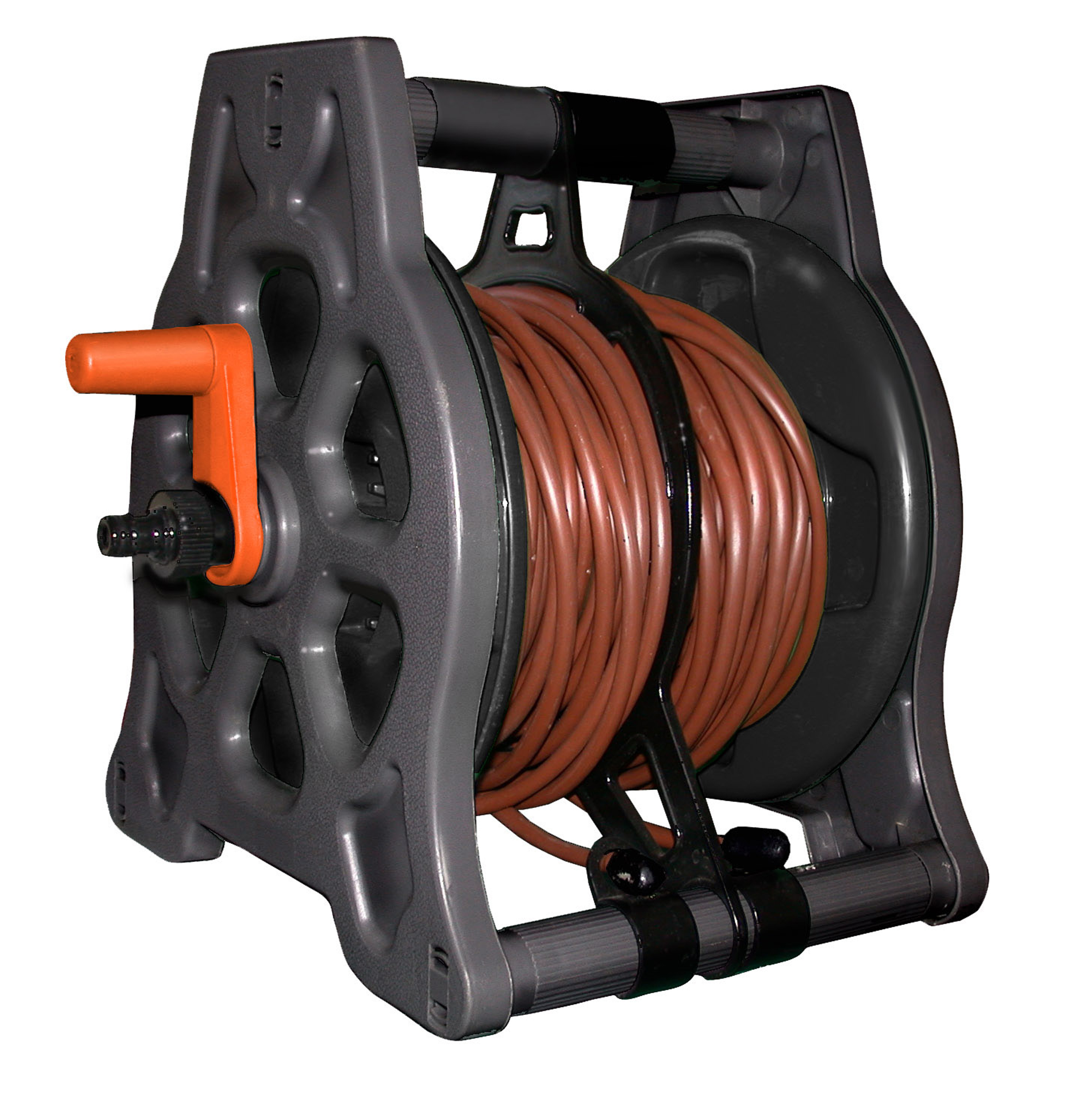 Einfach an Wasserhahn oder Regentank anschließen, die beiden Schläuche dort ausrollen, wo das Wasser benötigt wird, und fertig ist die Bewässerung.